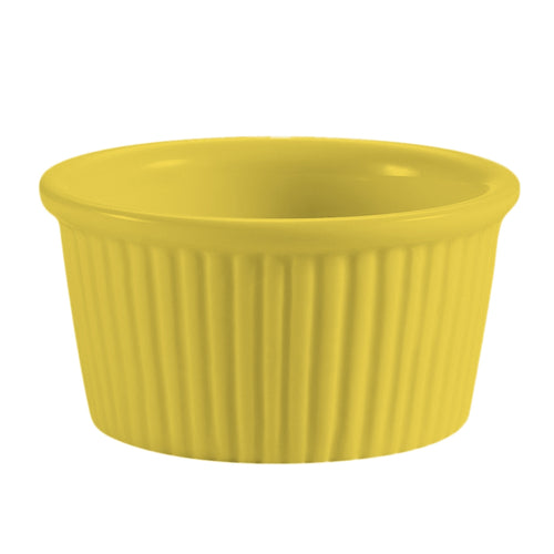 RKF Ramekin, 6 oz., 3-1/2" dia. x 1-3/4"H, round, fluted, dishwasher, oven and microwave safe, stoneware (ceramic), Yellow (Sold by case)