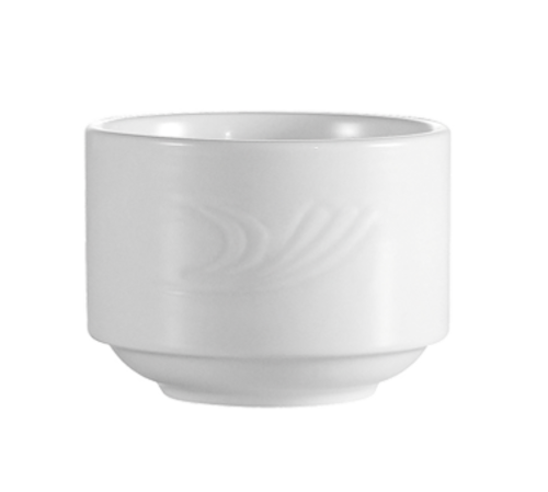 Roosevelt Bouillon Cup, 7-1/2 oz., 3-3/8" dia. x 2-1/2"H, round, stacking, embossed, dishwasher, oven and microwave safe, porcelain, Super White (Sold by case)