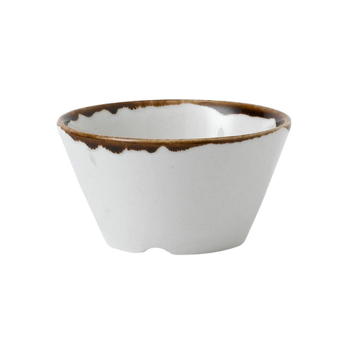 Sauce Dish, 3 oz., 3-1/8" dia. x 1-9/16"H, round, stackable, dishwasher & microwave safe, scratch-resistant, finest vitrified, glazed finish, ceramic, white with brown design, natural, Dudson, Harvest