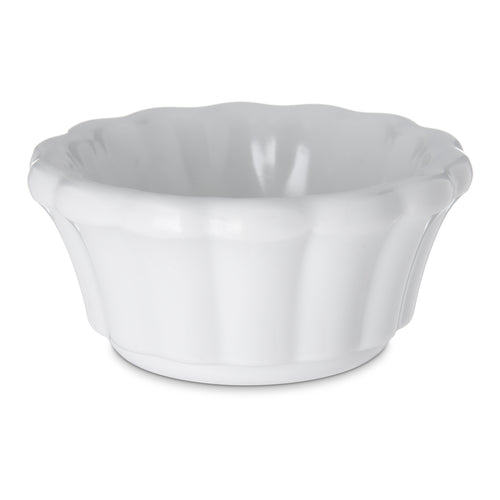 Ramekin, 2 oz., 3-1/11" dia., scalloped, stain/break resistant, dishwasher safe, stackable, safe for temperatures up to 212°F, melamine, white, NSF, BPA Free