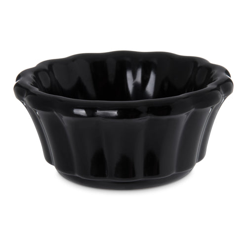 Ramekin, 2 oz., 3-1/11" dia., scalloped, stain/break resistant, dishwasher safe, stackable, safe for temperatures up to 212°F, melamine, black, NSF, BPA Free