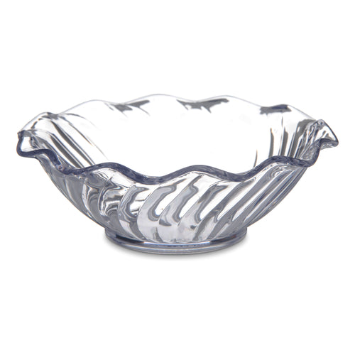 Tulip Berry Dish, 5 oz., 4-5/8" dia., scalloped edge, dishwasher safe, stain/chip/break resistant, stackable, recyclable, SAN, clear, NSF, Made in USA