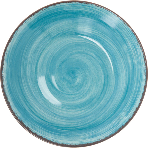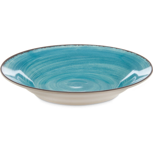 Mingle™ Soup Bowl, 18-1/2 oz. (28-1/2 oz. flush fill), 9" dia., round, swirl design, rimmed, dishwasher safe, stain and chip resistant, resists drawing heat or cold away from food, reinforced rim and foot design, stackable, safe for temperatures up to 212°F, melamine, aqua, BPA Free, NSF