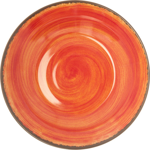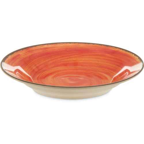 Mingle™ Soup Bowl, 18-1/2 oz. (28-1/2 oz. flush fill), 9" dia., round, swirl design, rimmed, dishwasher safe, stain and chip resistant, resists drawing heat or cold away from food, reinforced rim and foot design, stackable, safe for temperatures up to 212°F, melamine, fireball, BPA Free, NSF