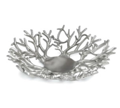 Fruit Basket, 12" dia., small, branch style, cast aluminum, brushed finish