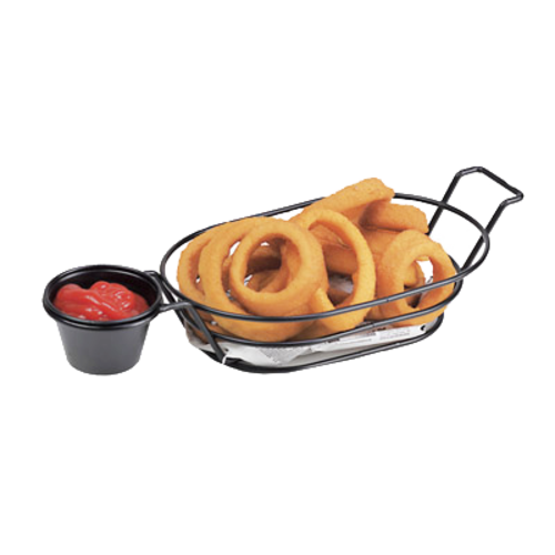Basket, 13-1/4" x 6" x 2", oval, with handle & (1) condiment cup holder, iron Teflon coated, black (fits 4-84100, 4-84111, 4-84105, RM-203, S-620, F-625, ER-025)