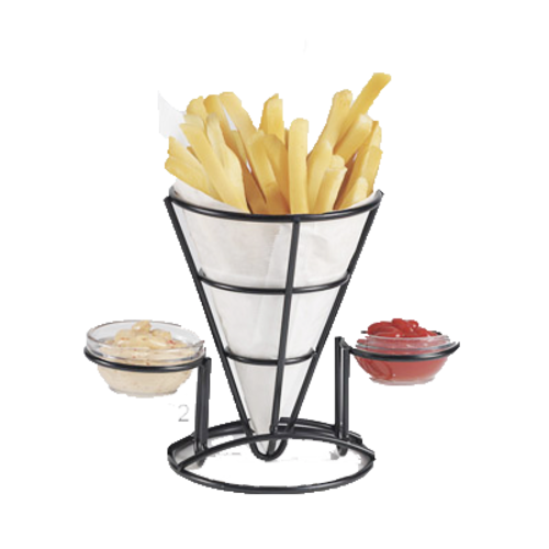 Fry Cone Basket, 5" dia. x 7"H, with (2) condiment cup holders, iron powder coated, black (fits 4-84100, 4-84111, 4-84105, ER-020, ER-025, ER-402, S-620, RM-387, F-625, RM-203, S-617)