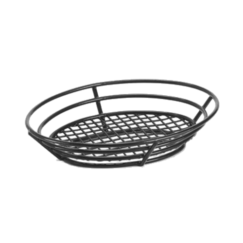 Basket, 11" x 8" x 2-1/4", oval, raised grid base, iron polyethylene coated, black