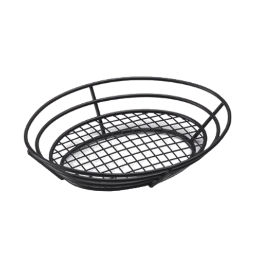 Basket, 11" x 8" x 2-1/4", oval, raised grid base, iron powder coated, black