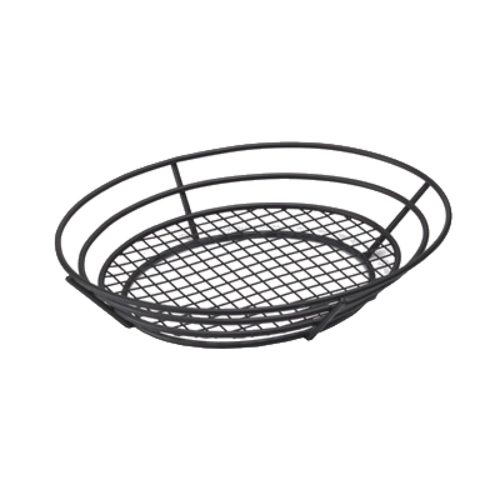 Basket, 12-1/2" x 9-1/4" x 2-1/4", oval, raised grid base, iron powder coated, black