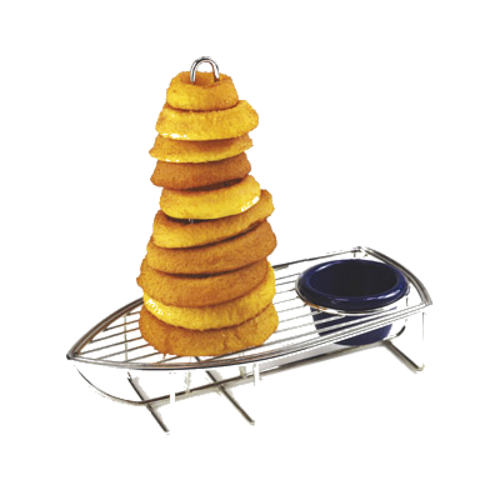 Onion Ring Boat Tower, 9-1/2" x 5" x 9", with (1) 2-3/4" dia. condiment cup holder, stainless steel (fits 4-84100, 4-84111, 4-84105, ER-020, ER-025, ER-402, S-620, RM-387, F-625, RM-203, S-617)