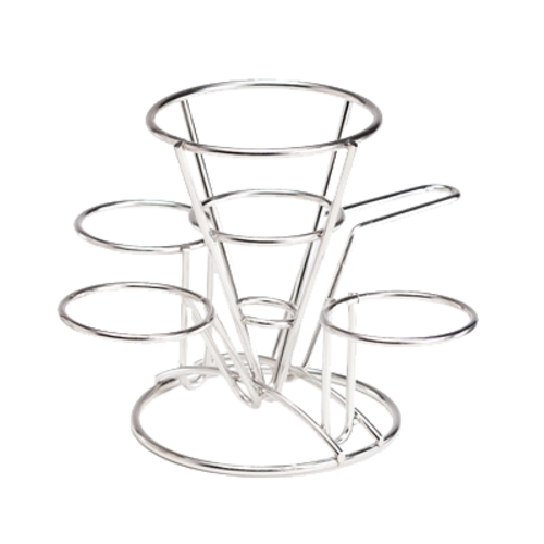 Fry Cone Basket, 4-1/4" dia. x 6"H, with handle & (3) 2-3/4" dia. condiment cup holders, stainless steel (fits 4-84100, 4-84111, 4-84105, ER-020, ER-025, ER-402, S-620, RM-387, F-625, RM-203, S-617)