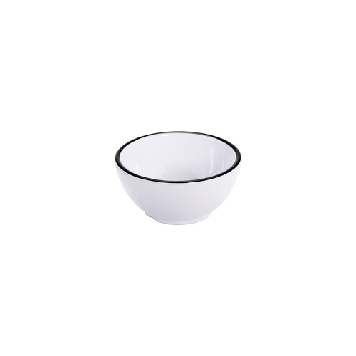 Settlement Bistro™ Enamelware Bowl, 14 oz. (16 oz. rim-full), 5-1/4" x 2-1/4", round, dishwasher safe, melamine, white with black trim, NSF, BPA Free