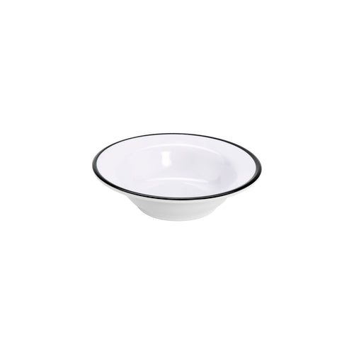 Settlement Bistro™ Enamelware Side Dish Bowl, 4-1/2 oz. (5-1/2 oz. rim-full), 5" x 1-1/4", round, small, dishwasher safe, melamine, white with black trim, NSF, BPA Free