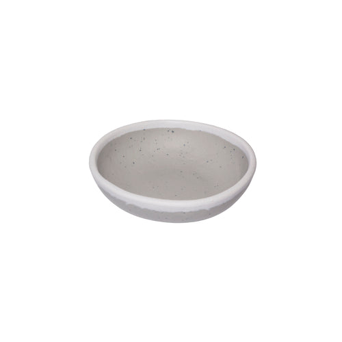 Pottery Market™ Ramekin/Monkey Dish/Side Bowl, 4.5 oz. (5 oz. rim-full), 4-1/2" dia. x 1"H, small, round, break-resistant, dishwasher safe, melamine, dove gray with white trim, NSF, BPA free