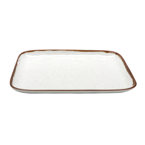 Rustic Mill™ Platter, 14" x 11-1/2", rectangular, irregular, break-resistant, dishwasher safe, melamine, cream base with brown speckles & brown rim, NSF, BPA free