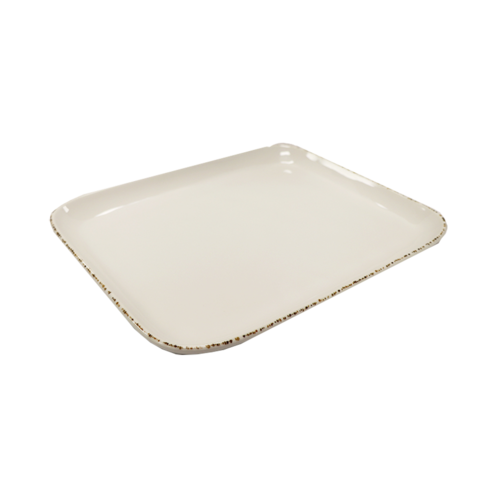 Urban Mill™ Platter, 14"L x 11-1/2"W, rectangular, irregular, break-resistant, dishwasher safe, melamine, cream, NSF, BPA free