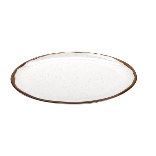 Rustic Mill™ Platter, 15" x 11", oval, irregular, break-resistant, dishwasher safe, melamine, cream base with brown speckles & brown rim, NSF, BPA free