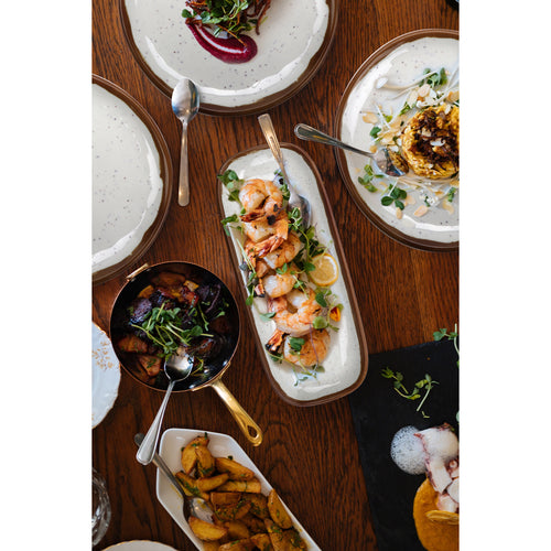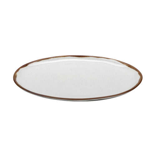Rustic Mill™ Platter, 18" x 13", oval, irregular, break-resistant, dishwasher safe, melamine, cream base with brown speckles & brown rim, NSF, BPA free