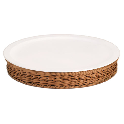 Frilich® Picknick Cold Food Display Set, 16-1/10" dia. x 2-3/4"H, round, includes: white china plate, cooling pack, insulated basin, tan plastic wicker basket base