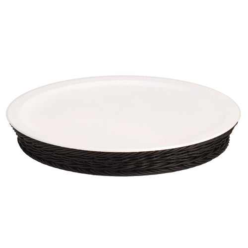Frilich® Picknick Cold Food Display Set, 16-1/10" dia. x 2-3/4"H, round, includes: white china plate, cooling pack, insulated basin, black plastic wicker basket base