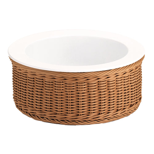 Frilich® Picknick Cold Food Display Set, 12-1/5" dia. x 5-7/10"H, round, includes: white china plate, cooling pack, insulated basin, tan plastic wicker basket base (special order, 6 week lead time, contact G.E.T. for minimum order quantity & details)
