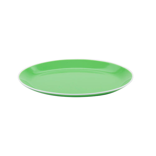 Settlement™ Oasis™ Dinner Plate, small, 10"L x 7-3/4"W, oval, coupe, break-resistant, dishwasher safe, BPA Free, melamine, apple green with white trim, NSF