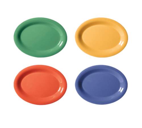 Diamond Mardi Gras™ Platter, 12"L x 9"W, oval, break-resistant, dishwasher safe, BPA free, melamine, mix pack of 4 Mardi Gras™ colors (tropical yellow, rio orange, peacock blue & rainforest green), NSF