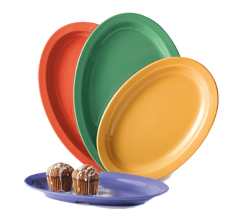 Creative Table™ Supermel™ Platter, 11-3/4" x 8-1/4", oval, break-resistant, dishwasher safe, melamine, mix pack of 4 Mardi Gras colors (tropical yellow, rio orange, peacock blue & rainforest green), NSF