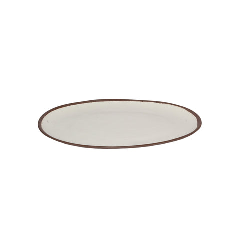 Pottery Market™ Platter, 15"L x 11"W, oval, break-resistant, dishwasher safe, melamine, cream with brown trim, NSF, BPA free