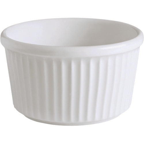 Ramekin, 6.8 oz., 3-3/4" dia., medium, round, ribbed, rolled edge, scratch/chip resistant, microwave, dishwasher & oven safe up to 380°F, porcelain, Corona, Actualite, bright white (Stocked Item)