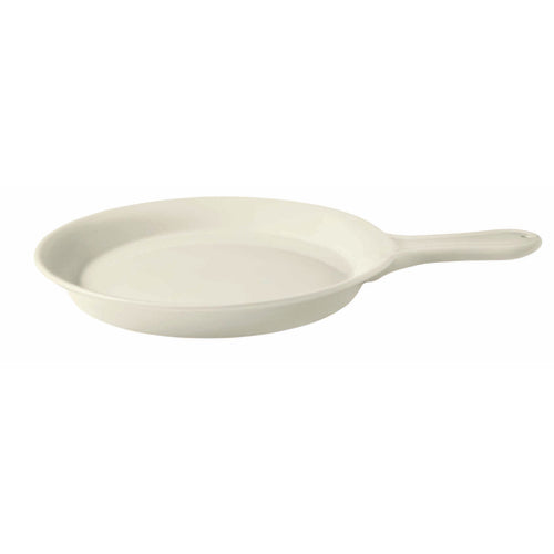 Pan, 10-1/4", round, rolled edge, with handle, scratch/chip resistant, microwave, dishwasher & oven safe up to 380°F, porcelain, Corona, Actualite, bright white (Stocked Item)
