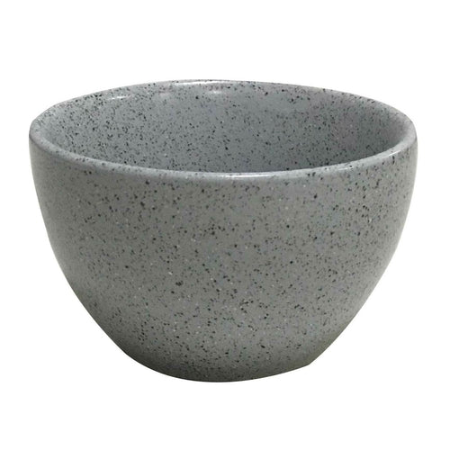 Bouillon Cup, 8.8 oz., 4" dia., round, rolled edge, scratch/chip resistant, microwave, dishwasher & oven safe up to 380°F, porcelain, Corona, Cosmos Moon, speckled grey reactive glaze (Stocked item)