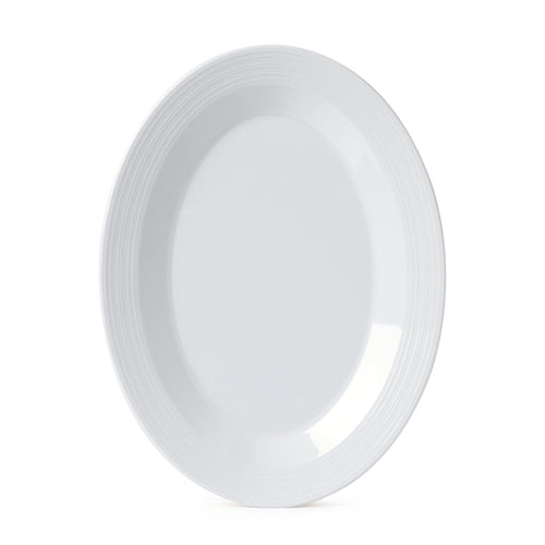 Minski™ Platter, 12" x 9", oval, textured rim, break-resistant, dishwasher safe, melamine, white, NSF, BPA free