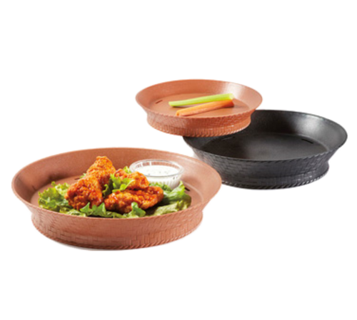 Basket, 7.27" x 1-1/4" deep, round, with base, slotted for drainage, dishwasher safe, textured finish, plastic, terracotta