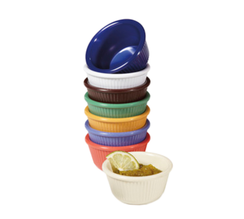 Diamond Mardi Gras™ Ramekin, 3 oz., 3-1/4" dia. x 1-3/4"H, cone shape, fluted, break-resistant, dishwasher safe, melamine, mix pack of 4 Mardi Gras™ colors (tropical yellow, rio orange, peacock blue & rainforest green), NSF