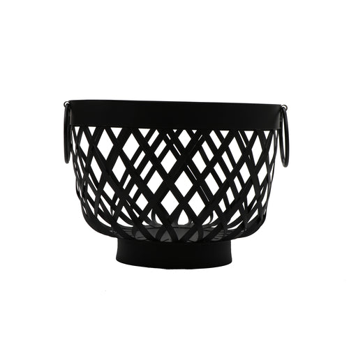 Harvest Basket, 9-1/2" dia. x 7-1/4"H, round, with side ring handles, metal strap construction, black