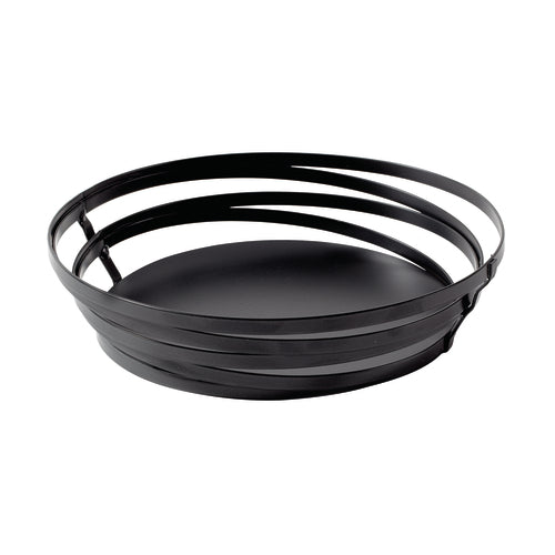 Cyclone™ Serving Basket, 9" dia. x 2-1/4", round, powder coated metal wire, solid bottom, metal gray