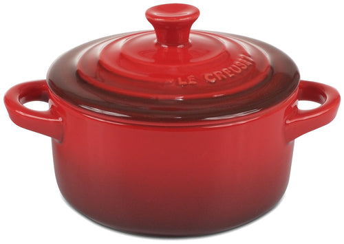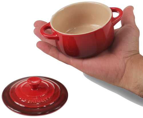 Casserole Dish, 3-3/4" dia. x 2"H, 8 oz., individual sized, round, with lid, enameled stoneware, red
