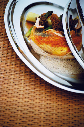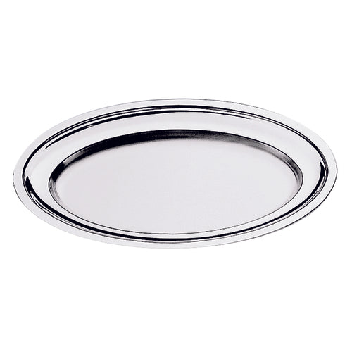 Serving Plate, 23-5/8"L x 16-1/8"W, oval, reinforced edge, dishwasher safe, 18/10 stainless steel, Menu & Banquet