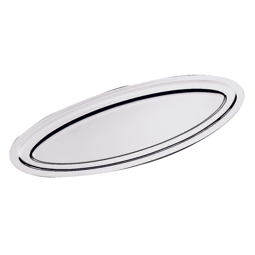 Fish Plate, 21-5/8"L x 9-1/2"W, oval, reinforced edges, dishwasher safe, 18/10 stainless steel, Menu & Banquet