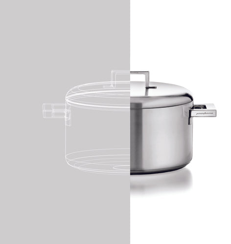 Casserole, 2-5/8 qt. (2-1/2 liter), 7" dia. x 4"H, round, 2 handles, heat-diffusing bottom with elevated thickness, ergonomic, hollow, welded, heat-resistant handles, dishwasher safe, induction/gas/electric/halogen/oven safe, 18/10 stainless steel, external matte finish, glossy-matte handle finish, STILE by Pininfarina