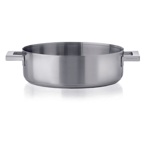 Casserole, 3-3/16 qt. (3 liter), 9-7/16" dia. x 3-1/5"H, round, low, 2 handles, heat-diffusing bottom with elevated thickness, ergonomic, hollow, welded, heat-resistant handles, dishwasher safe, induction/gas/electric/halogen/oven safe, 18/10 stainless steel, external matte finish, glossy-matte handle finish, STILE by Pininfarina