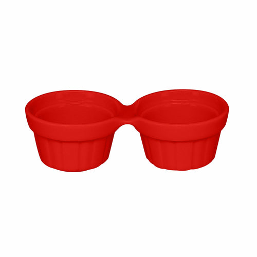 Chef's Fusion Ramekin, 5-1/8" dia., round, double, with spoon, fridge/freezer/oven/microwave/dishwasher safe, porcelain, ember red