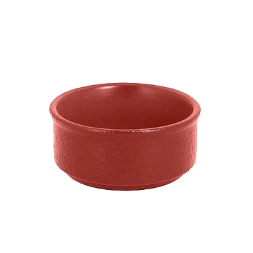 Neo Fusion Butter Ramekin, 3.4 oz., stackable, break resistant, lead free, oven/microwave/dishwasher safe, non-porous glaze, magma dark red