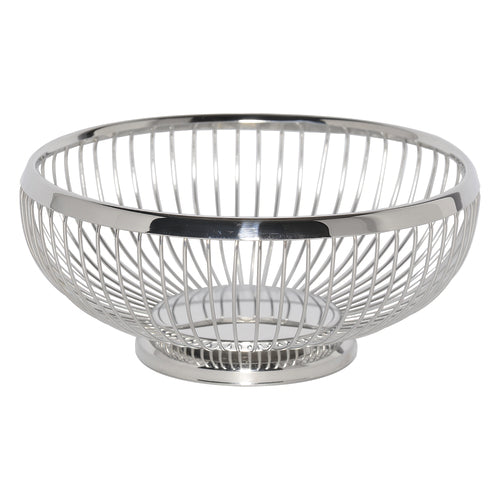 Basket, 8-1/2" dia. x 3-3/4", round, weighted base, hand wash only, wire, 18/8 stainless steel, polished finish (Priced per each, packed 12 each per case)