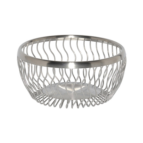 Basket, 9" dia. x 3-3/4"H, round, wavy, hand wash only, wire, 18/8 stainless steel, brushed finish (Priced per each, packed 12 each per case)