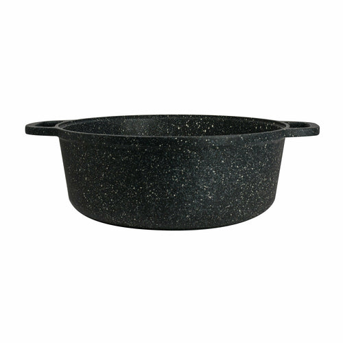 Buffet Pot, 5-3/4 qt., 14-3/4"L x 11-3/4"W x 4-1/2"H, round, tempered glass lid with knob, oven safe up to 450°F, electric/gas/induction/dishwasher safe, 4-ply ceramic non-stick cast aluminum, black granite finish, Folio Cookware (minimum = case quantity)