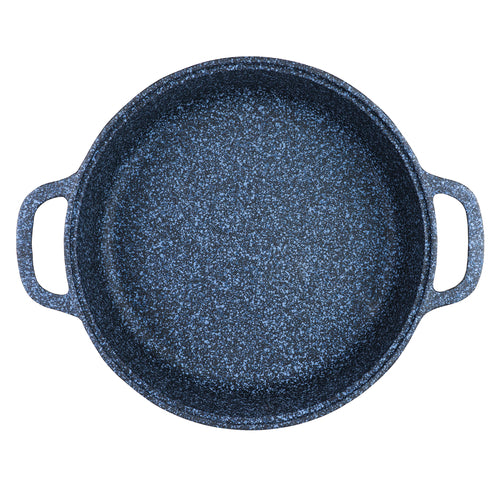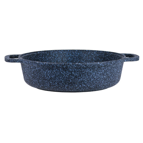 Buffet Pot, 4 qt., 14-3/4"L x 11-3/4"W x 3-1/4"H, round, tempered glass lid with knob, oven safe up to 450°F, electric/gas/induction/dishwasher safe, 4-ply ceramic non-stick cast aluminum, blue granite finish, Folio Cookware (minimum = case quantity) (sto
