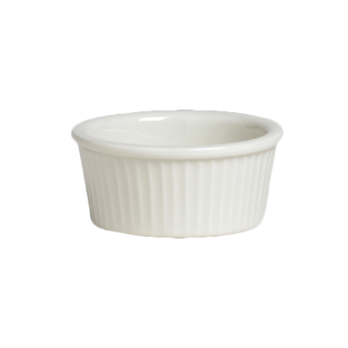 Ramekin, 6 oz., 3-7/8" dia. x 1-3/4"H, fluted, fully vitrified, clear glaze, Anfora, American Basics (minimum = case quantity) (stock item)